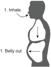 - Tarik napas pelan-pelan sambil mengembungkan perut, dan buang napas sambil mengempiskan perut. Pernapasan lewat hidung seperti biasa, jangan menggunakan mulut. Sekali menarik dan membuang napas ini disebut 1 putaran.